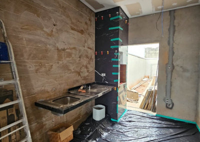 Área gourmet com churrasqueira de alvenaria