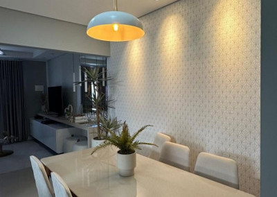Projeto de iluminação completo com lustres, pendentes, LED e sancas iluminadas