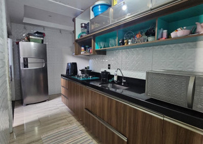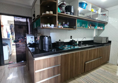 Cozinha ampliada com móveis planejados