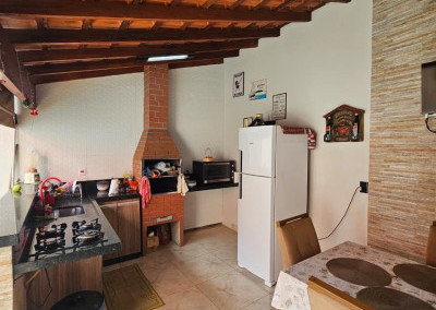 Área de lazer completa com cozinha planejada, pia e churrasqueira