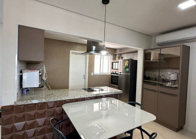 Sala de estar e jantar integradas à cozinha