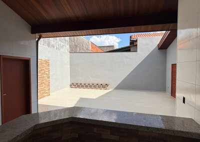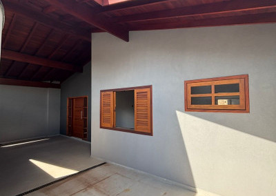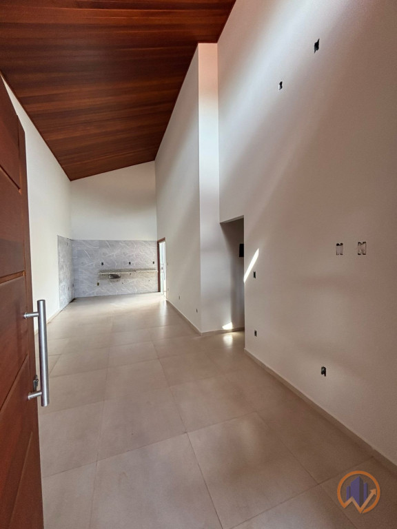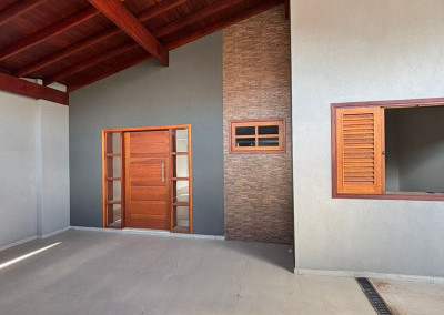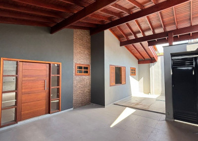 Excelente casa térrea recém finalizada, com projeto moderno, ambientes integrados e acabamento diferenciado em madeira. Imóvel pronto para morar.